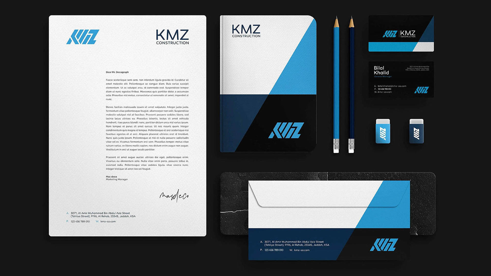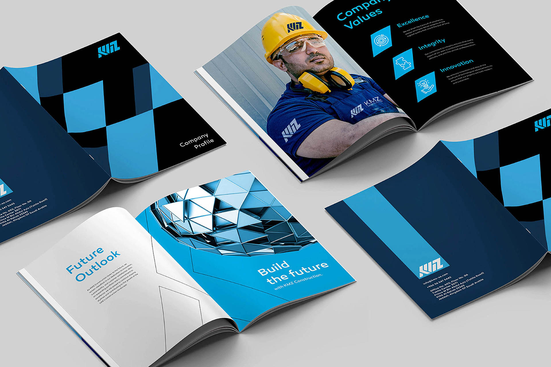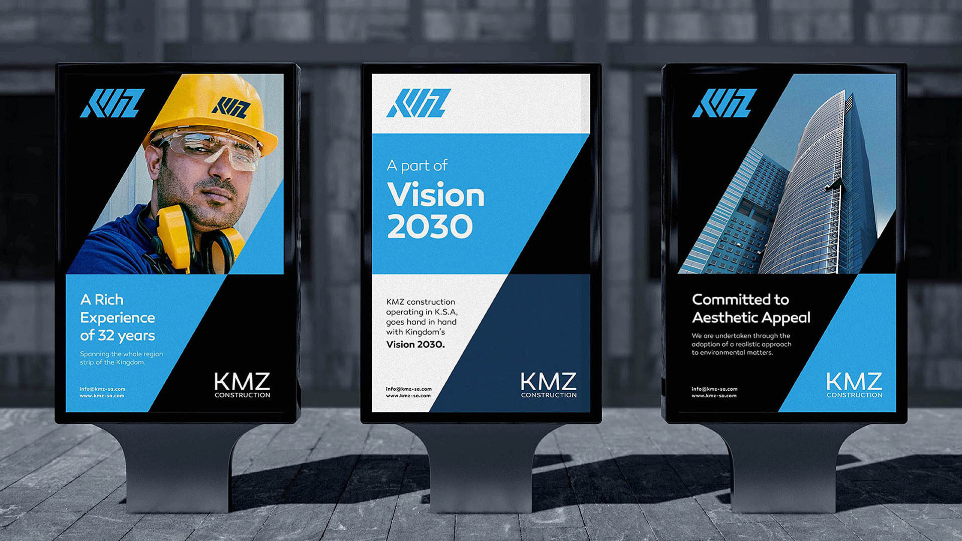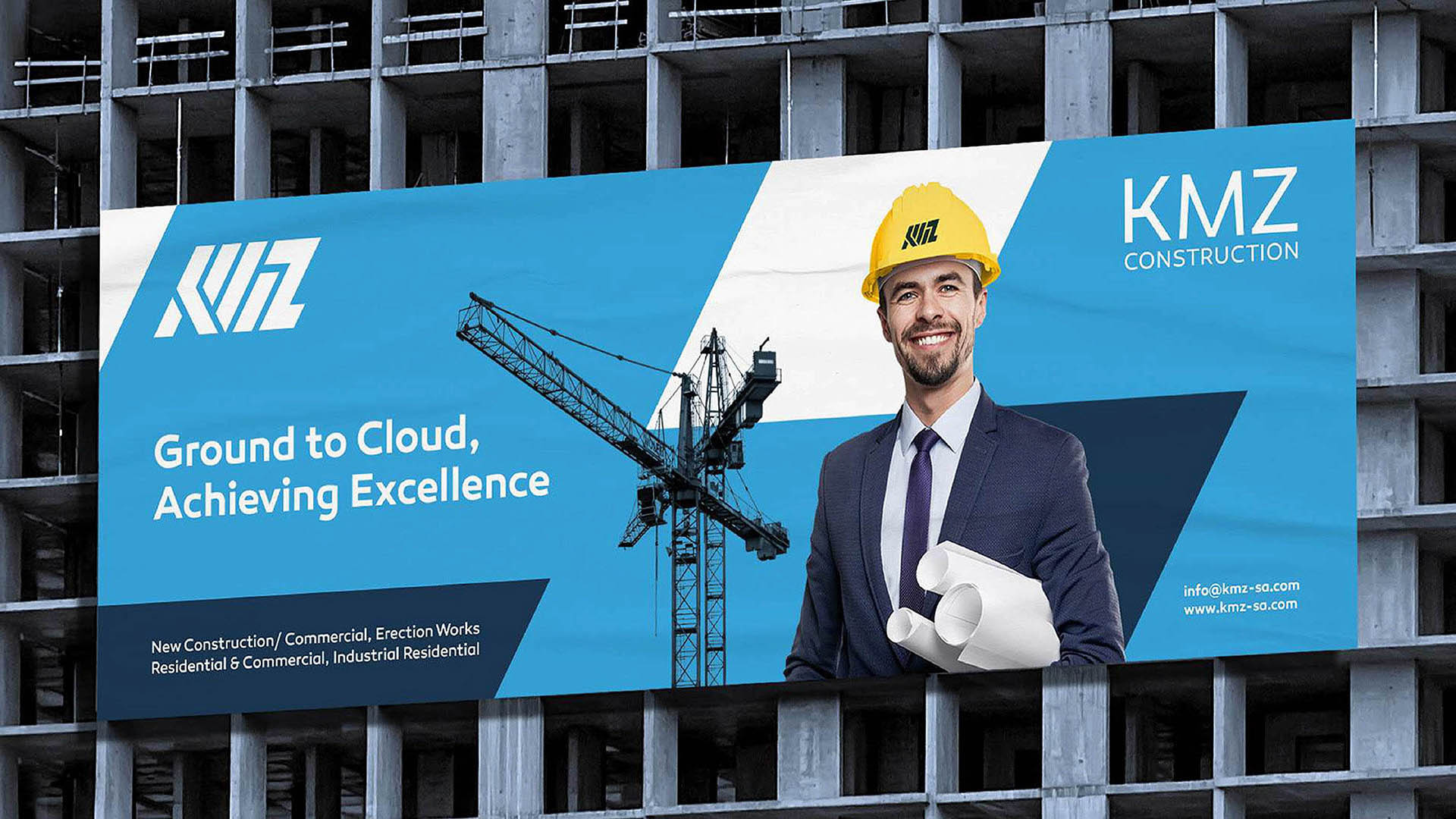 KMZ Construction is a forward-thinking construction company committed to delivering high-quality projects with precision, reliability, and innovation. Incorporating the silhouette elements of skyscrapers in KMZ to build a trustworthy wordmark, we emerged a supreme image of diligence, teamwork, trust, and quality to express KMZ Construction’s excellence.